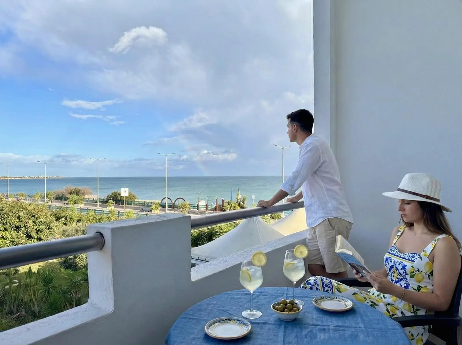 Il grande balcone abitabile offre un affaccio esclusivo fronte mare